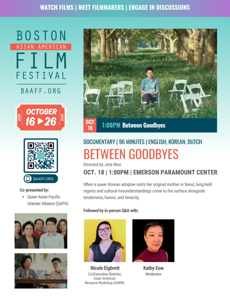 Jota Mun (they/them) is the director and producer of “Between Goodbyes”, which had its world premiere at the DMZ International Film Festival, where they won the Emerging Filmmaker Award. The film was selected to screen at DOC NYC, Chicago International Film Festival, Santa Fe International Film Festival where it won a Special Jury Award for Feature Documentary, and CinemAsia Film Festival where it won the audience award. As an editor, Jota’s credits include the Emmy-nominated Netflix series “Who Killed Malcolm X?”.